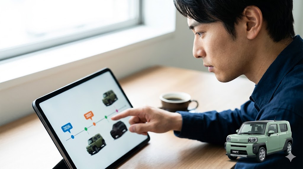 - 今すぐ、または1年以内に車が必要な方: 迷わず現行型のタフトを買うのが正解です。2024年末に安全装備が強化されたばかりの、不具合の少ない成熟モデルを手に入れるメリットは計り知れません。最新の法規にも対応しており、長く安心して乗ることができます。