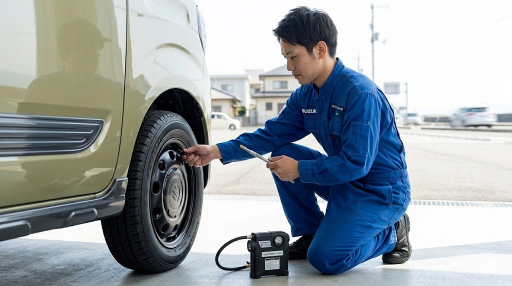スペーシアに乗っていて「乗り心地が悪い、疲れる」と感じたら、まずは誰にでもすぐにお金をかけずにできる「タイヤの空気圧を冷間時に指定値へ正確に調整する」ことから始めてみてください。