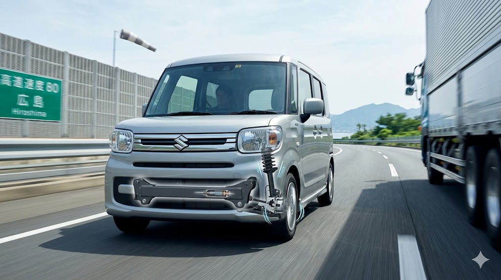 例えば、2023年の秋にフルモデルチェンジされた現行型(MK54Sなど)は、ボディの骨格である「ハーテクト」のさらなる進化や、減衰接着剤・構造用接着剤の使用範囲を大幅に拡大したことで、車体全体の剛性が劇的に上がっています。