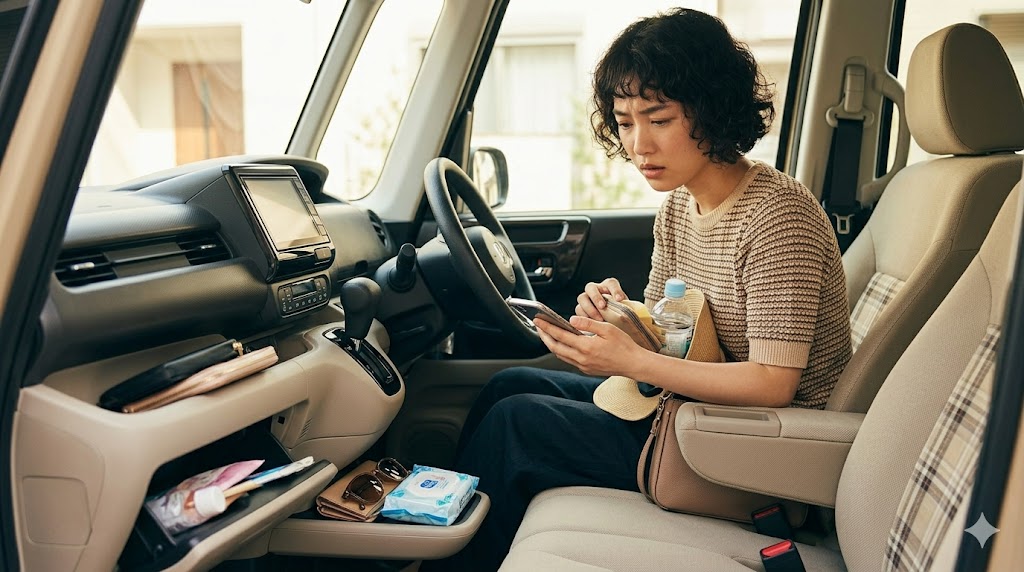 そのため、スマホや財布、ウェットティッシュなど、ちょっとした小物を置く場所に困るというリアルな不満が口コミでも散見されます。