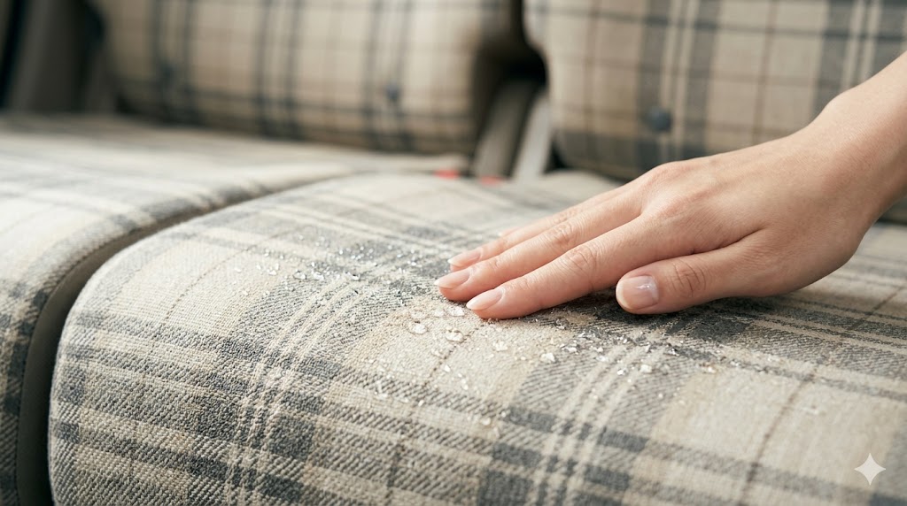 インテリア最大の注目ポイントは、なんといっても汚れが目立ちにくい撥水素材のチェック柄シートですね。