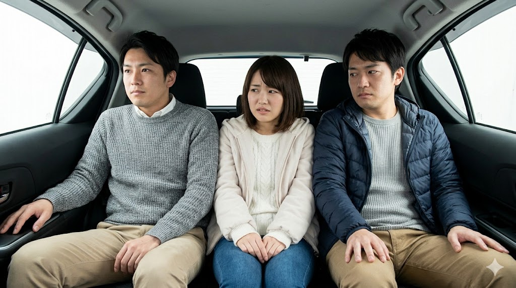 大柄な男性が3人乗ることは物理的にかなり困難ですし、小柄な女性や学生の方であっても、少しでも長い時間乗っていると息苦しさから確実にイライラしてきて、車内の空気が悪くなってしまうでしょう。