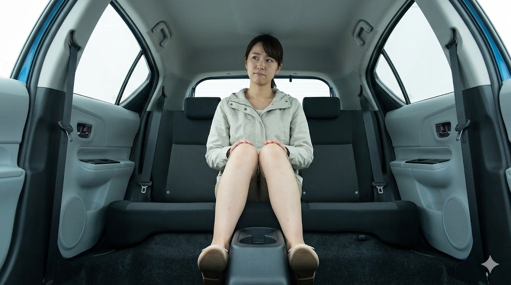 アクアの運転席に座った時はそれほど感じないのに、後部座席に乗った瞬間に感じるあの独特の狭さ。
