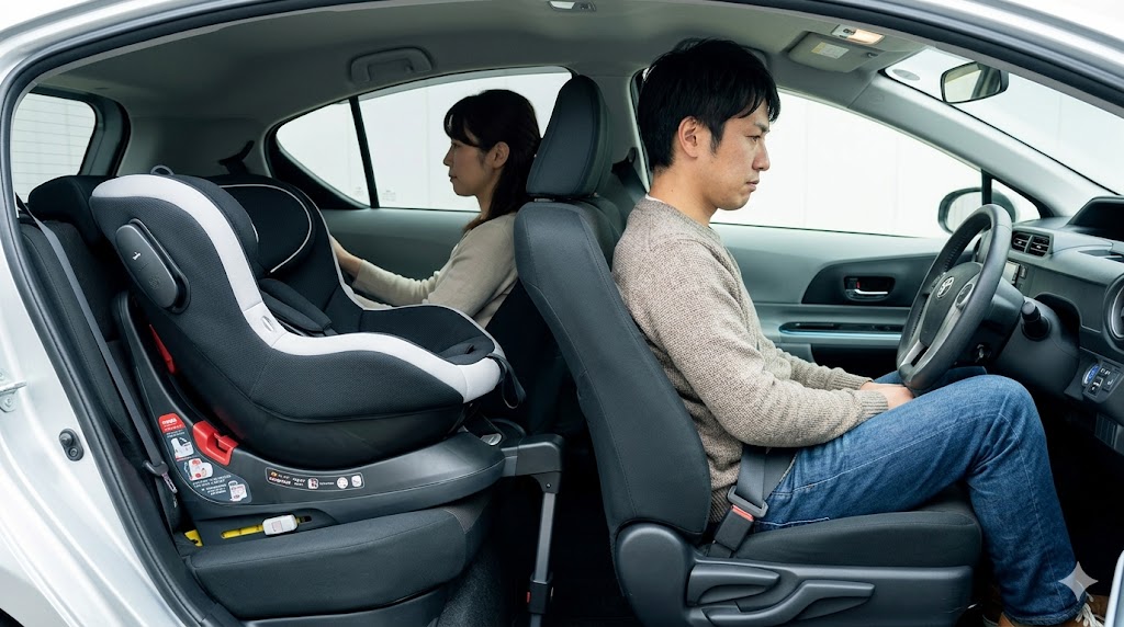 アクアの後部座席にチャイルドシートを設置しようと考えている方は、実際の運用においてかなりシビアな空間管理を迫られることになります。