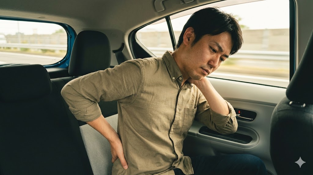 座席の角度自体は決して悪くなく、きちんと座れば適度な姿勢を保てるように設計されていますが、映画館のシートのように座る姿勢が常に一定になるため、長距離ドライブの際はどうしても同じ筋肉ばかりを使い、腰や背中に疲労が蓄積しやすくなります。
